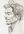 This detailed pencil portrait depicts a man in profile, with unruly hair and a narrow goatee. The drawing balances precision and restlessness: dense, layered lines shape the face, while the hair remains sketch-like and open. Rather than aiming at characterization or typification, the portrait captures a moment of presence.